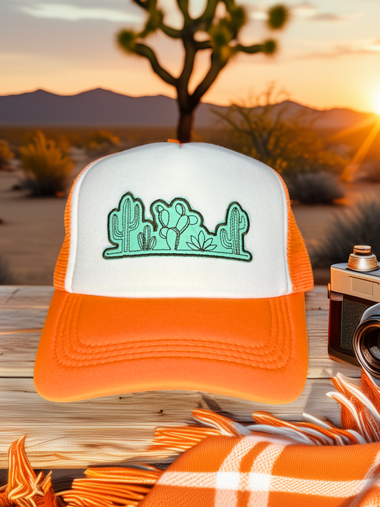 Faux Leather Cactus Patch Trucker Hat – Handmade Desert Style
