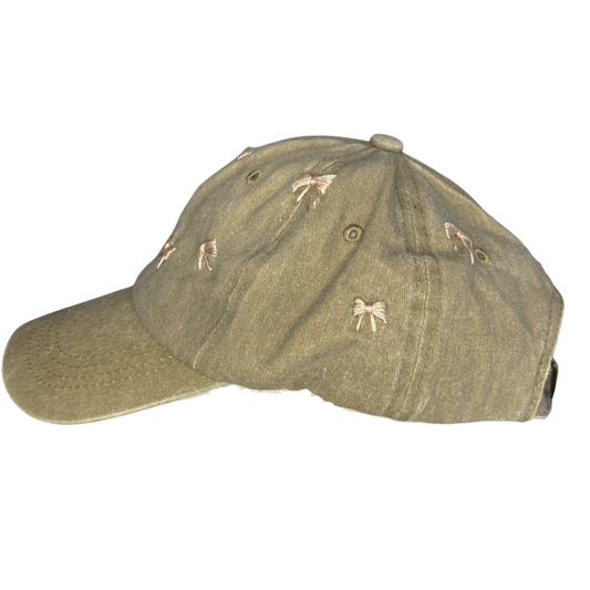 Hand-Embroidered Olive Bow Hat – Adjustable Cotton Cap