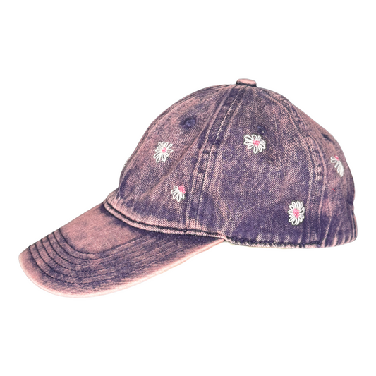 Pink Stone‑Wash Daisy Embroidered Cap – Adjustable Hand‑Embroidered Hat (Made in Kansas City, USA)