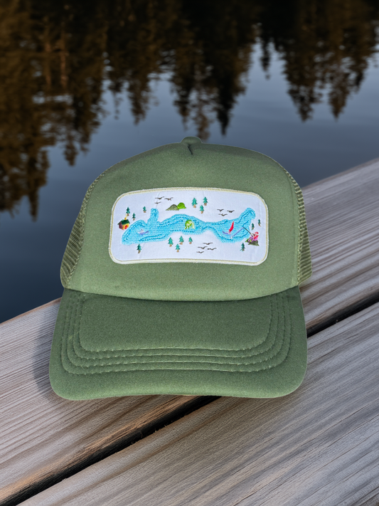 Lake Map Trucker Hat – Handmade Outdoor Adventure Style