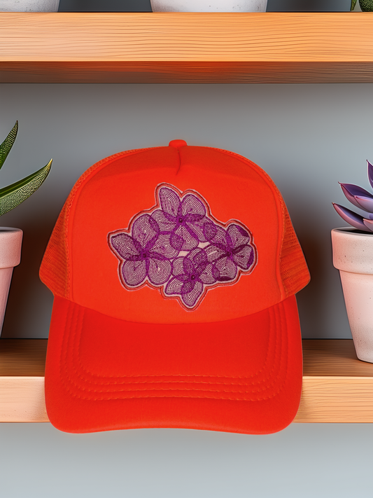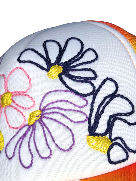 Neon Floral Trucker Hat – Handmade Statement Patch