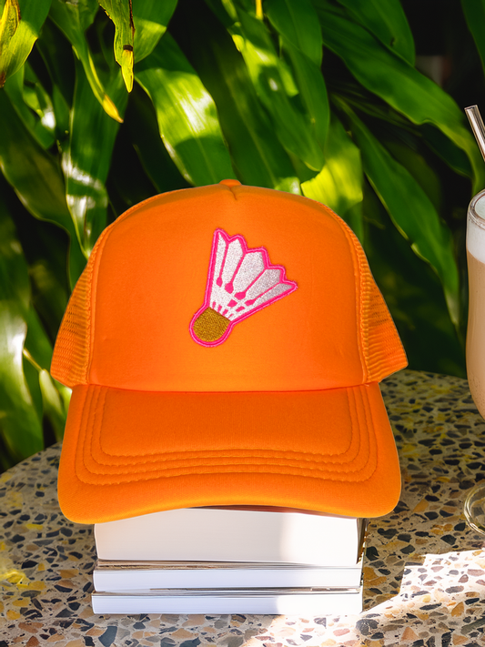 Neon Orange Trucker Hat with Handmade Shuttlecock Patch – KC Nelson-Atkins Inspired