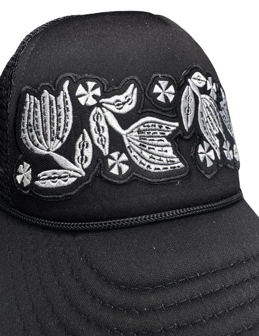 Black Trucker Hat with Embroidered Pyrex Black Tulip Patch – Handmade in Kansas City, Ready to Ship