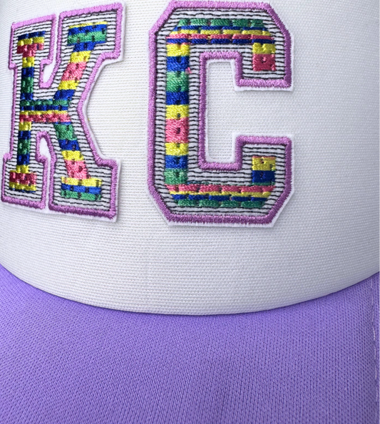 Lilac Trucker Hat with Rainbow Stripe KC Patch β Handmade in Kansas City, Ready to Ship