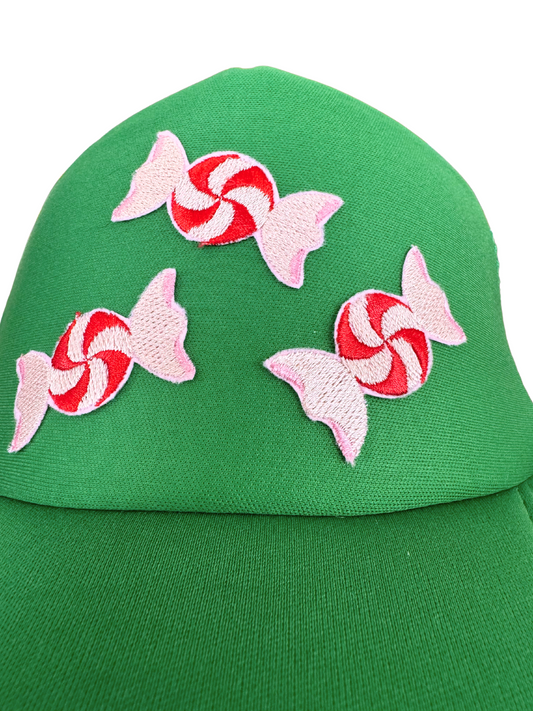 Peppermint Candy Green Trucker Hat β Festive Embroidered Holiday Hat β Handmade in Kansas City