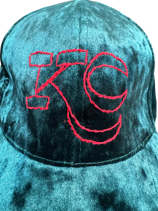 Teal Velvet KC Hat β Hand-Embroidered KC Logo in KC Current Colors, Ready to Ship, Made in Kansas City