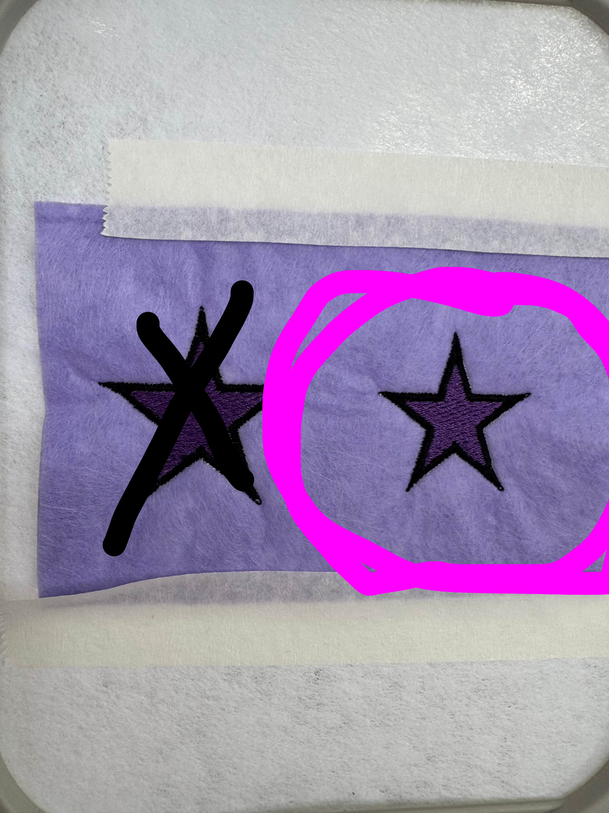 700 1.25"x 1.25" embroidered star iron on patches. Purple with black outlines.